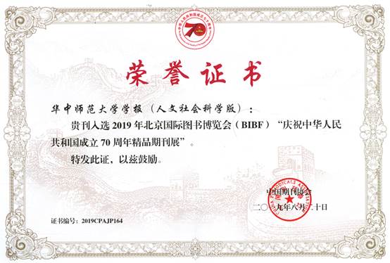 近日,《华中师范大学学报(人文社会科学版)成功入选“庆祝中华人民共和国成立70周年精品期刊展”,于2019年第26届北京国际图书博览会(BIBF)上展出。