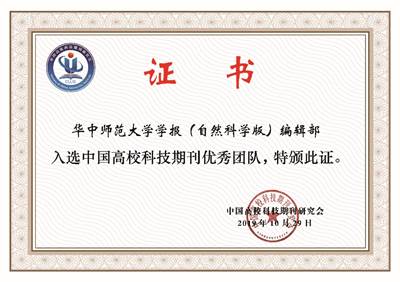 2019年11月6日至9日,中国高校科技期刊研究会第23次年会于成都隆重举行,大会共发布经严格遴选的中国科技期刊“优秀团队”82家,《华中师范大学学报(自然科学版)》编辑部荣膺其列。