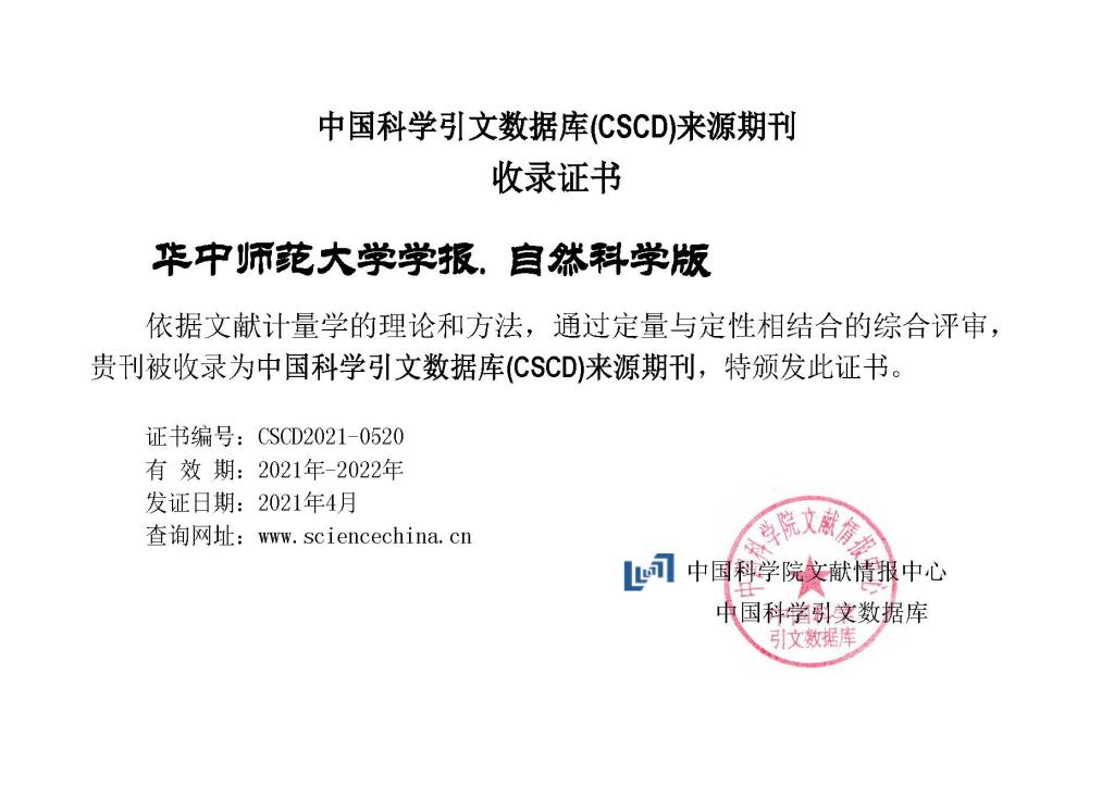 近日,中国科学院文献情报中心发布中国科学引文数据库(CSCD)来源期刊遴选报告(2021-2022年度),《华中师范大学学报(自然科学版)》再次入选。此次发布的CSCD来源期刊中,师范类院校同类学报仅5家收录。